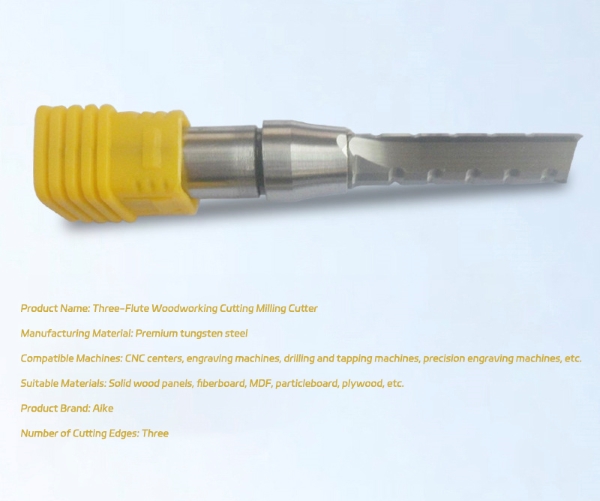 ZhongyedasTrefløyte Trebearbeidingsskjæring Freshar skjærekanter av hardmetall. Den balanserte tre-fløytedesignen sikrer jevn sponevakuering, minimerer chipping og gir stabil drift.